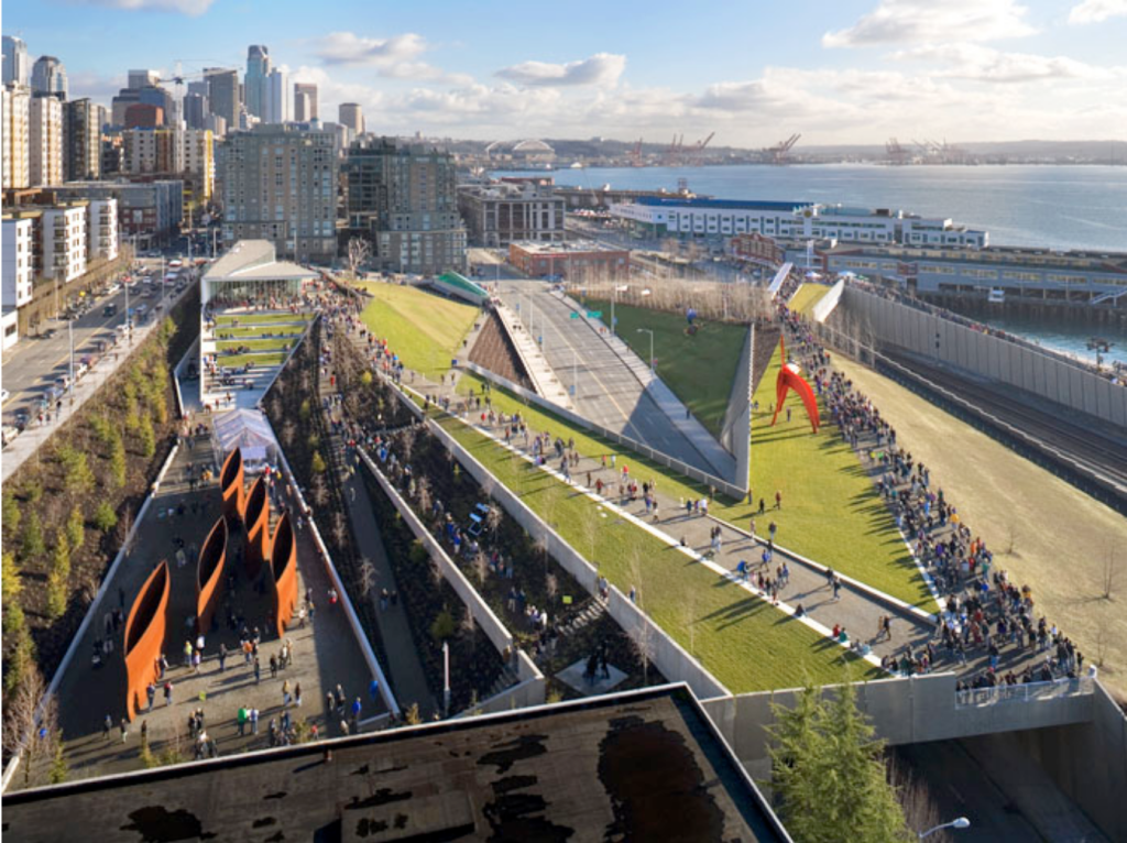 My morning routine usually goes like this: I get up, dress in some casual comfy clothes, and walk my dogs to our local coffee shop. Then, I usually take them to one of two “green spaces” in our neighborhood- our sweet Belltown Community Garden (lovingly maintained by our neighbors and, surprisingly, occupied by an urban rabbit colony! Cute!), or the majestic Olympic Sculpture Park.